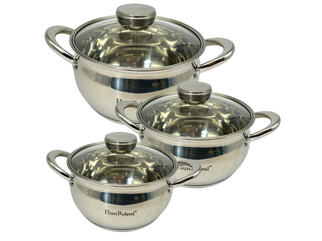 Sada moderních nerezových hrnců se skleněnými poklicemi s otvory pro odvod páry je vhodná pro všechny druhy sporáků včetně indukce. Elegantní design hrnců v kombinaci matu a lesku umožňuje hezké servírování přímo na stole. Hrnce jsou vyrobeny z prvotřídní nerezové oceli, sendvičové dno pro rovnoměrný a rychlý ohřev. Speciálně tvarované okraje hrnců usnadňují rozlévání bez rozstřikování. Díky skleněným poklicím vidíte, co se v hrnci děje.