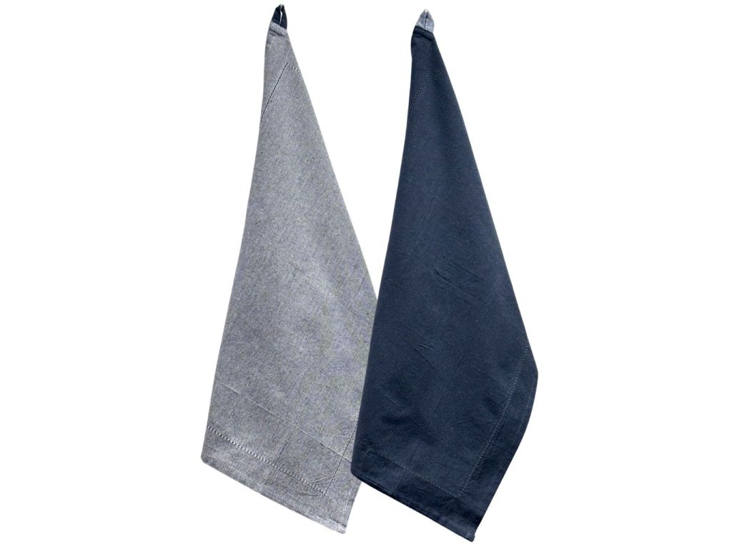 Set 2 kusů kuchyňských utěrek je sladěn do tmavé a světlé šedé, poutka v opačné barvě utěrky a ozdobné štepování. Doplňte o další produkty z kolekce recyklované bavlny - zástěru, chňapku a vaše kuchyň získá jiný šmrnc.