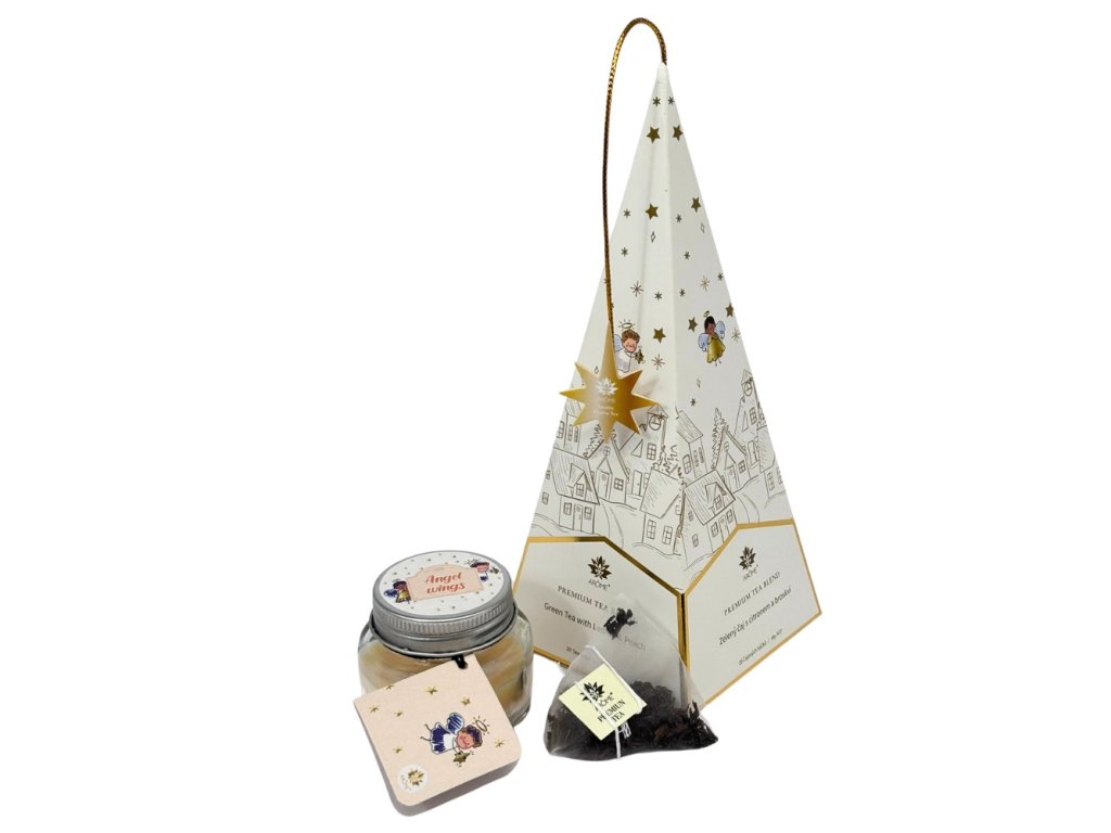 Tato dárková sada je skvělým nápadem na dárek pro každého milovníka čaje a pohody. Obsahuje ochucený zelený čaj a svíčku s příjemnou vůní a štítkem pro napsání osobního vzkazu. Díky dárkovému balení s vánočními motivy je sada připravena rovnou k darování.