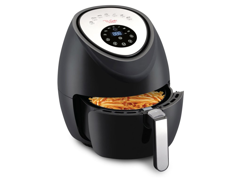 Horkovzdušná fritéza o objemu 3,5 litru, digitální ovládací panel. Skvělé jídlo bez zápachu z přepáleného tuku.