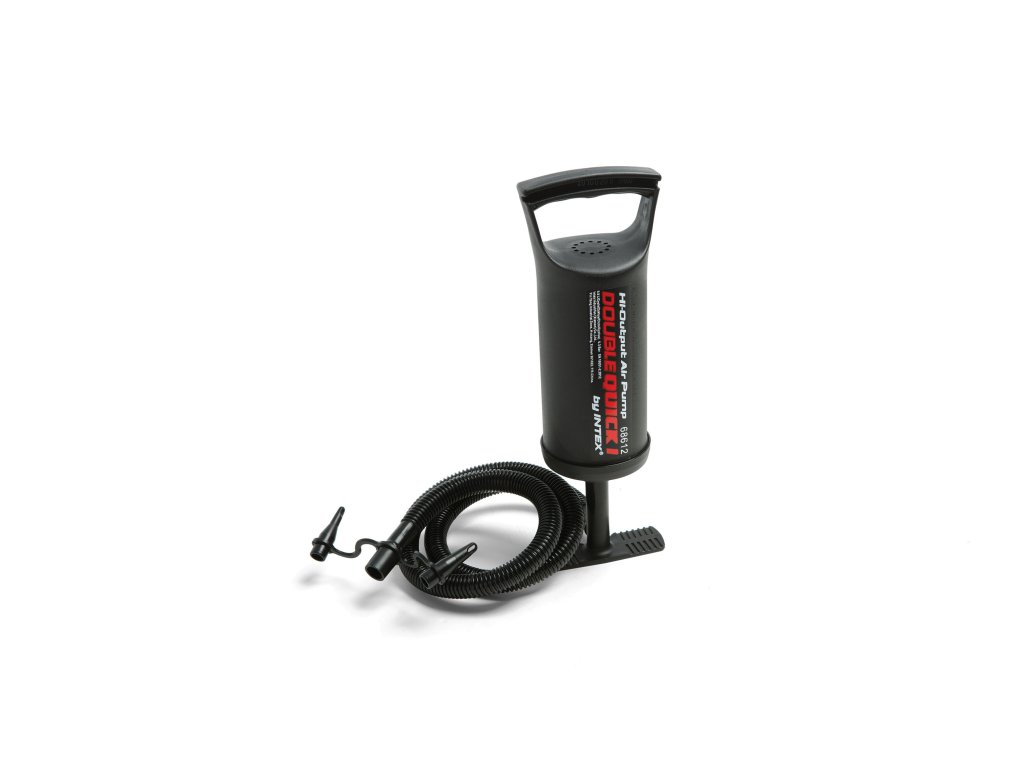 Výborný pomocník při nafukování kruhů, lehátek, hraček, křesel a také člunů a bazénů. Pumpa totiž nafukuje nejen při stlačení dolů, ale i při tahu nahoru. Pumpa má tři nástavce na ventily – malý, střední, velký, které jsou vhodné pro většinu ventilů. Pumpa umožňuje nafouknutí i vyfouknutí.