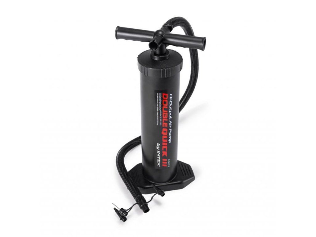 Výkonná ruční dvoučinná pumpa vhodná pro nahuštění malých a středně velkých nafukovacích výrobků. Lehátka, míče, kruhy nebo jízdní kola nafouknete rychle a bez námahy.