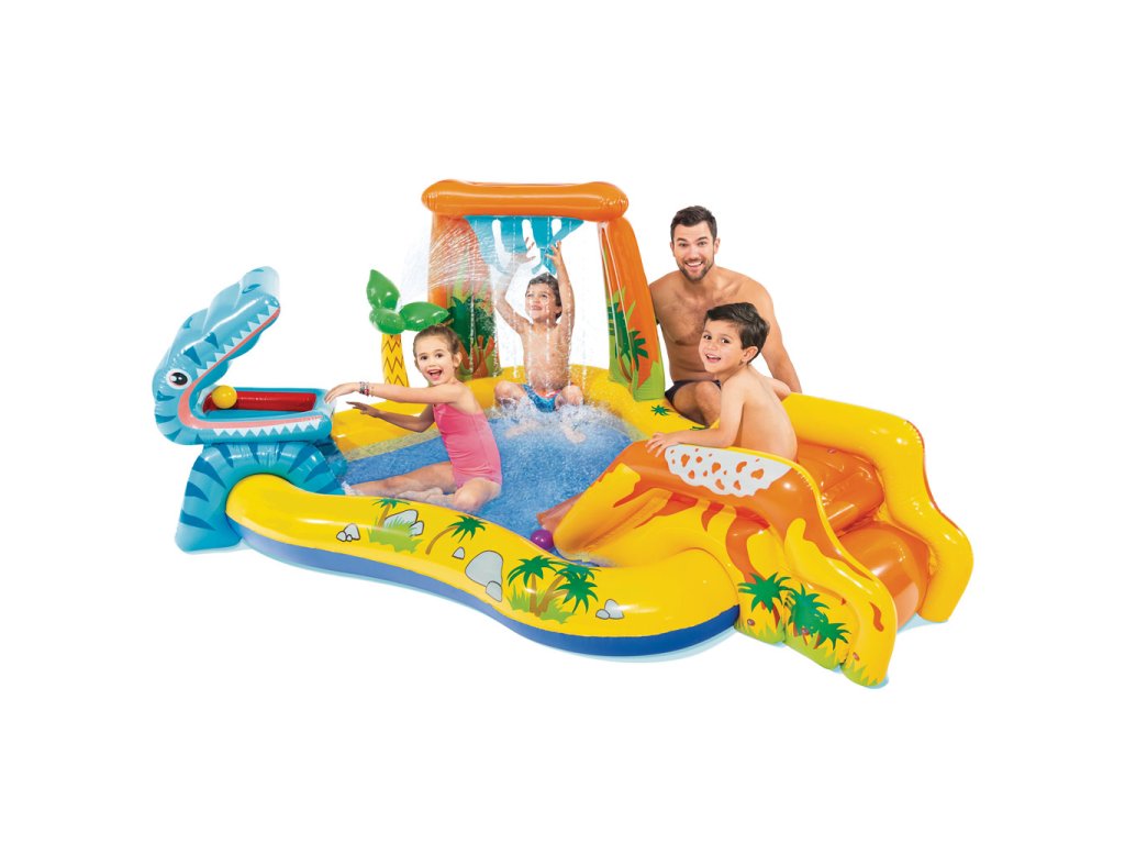S dětským nafukovacím centrem INTEX Dinosaur můžete svoji zahradu proměnit ve vodní království pro vaše děti. S kamarády si v něm tak celé léto budou moci užívat spoustu zábavy.