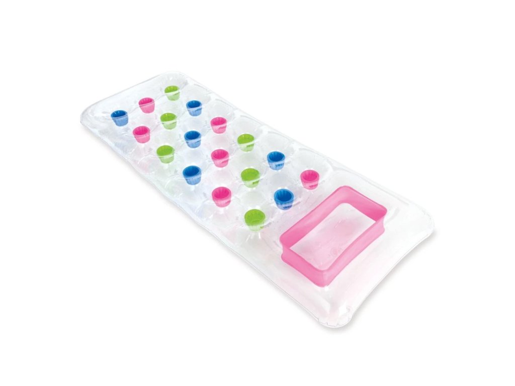 Nafukovací opalovací lehátko s průhledným oknem a zabudovaným polštářem je vyrobeno z průhledného a pevného vinylu. Transparentní materiál vám umožní sledovat dění pod vodou. Lehátko je ideální pro relaxaci na vodní hladině, na pláži či u bazénu.