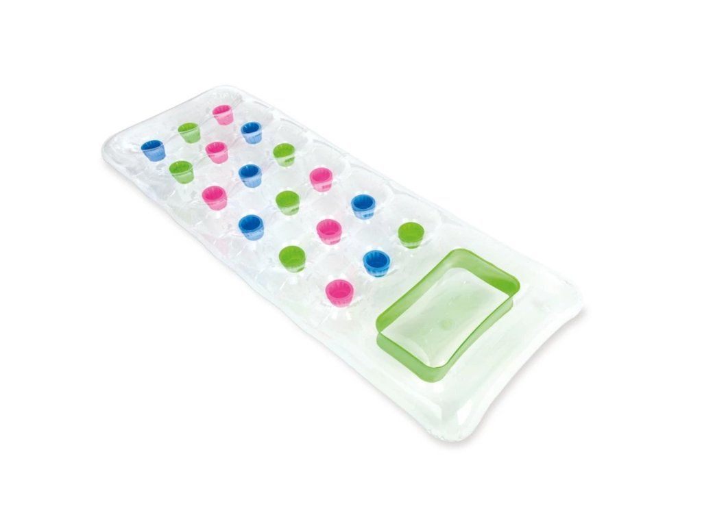 Nafukovací opalovací lehátko s průhledným oknem a zabudovaným polštářem je vyrobeno z průhledného a pevného vinylu. Transparentní materiál vám umožní sledovat dění pod vodou. Lehátko je ideální pro relaxaci na vodní hladině, na pláži či u bazénu.