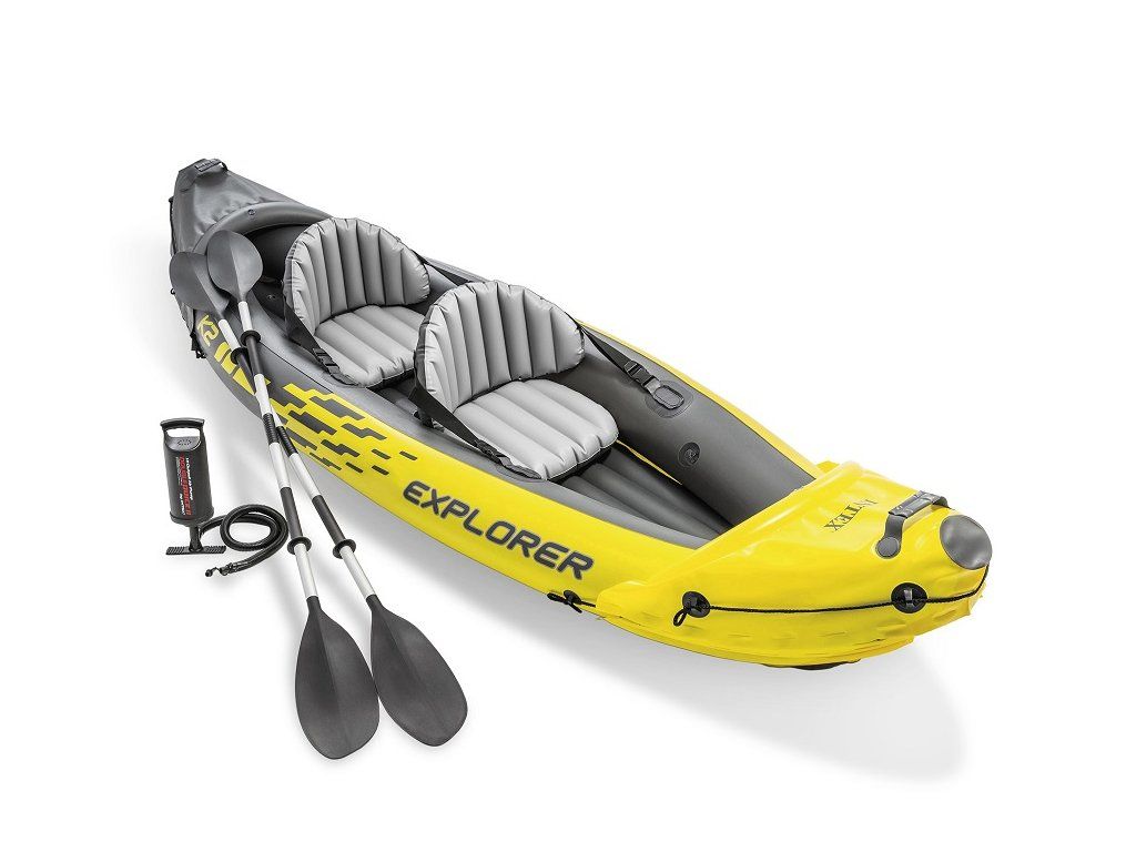 Dvoumístný odolný nafukovací kajak INTEX s vysokou viditelností. Nafukovací kajak Explorer K2 je určen pro rekreační plavbu po rybnících, jezerech a mírných řekách, kajak má aerodynamický tvar pro snadné pádlování. Kokpit kajaku je navržen pro maximální komfort a dostatek volného místa.