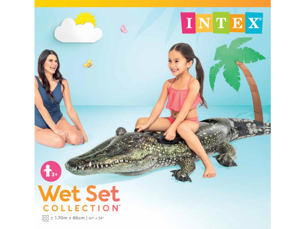Nafukovací krokodýl INTEX je nafukovací vozítko v designu reálného krokodýla. Dvě pevná držadla, která jsou umístěna přímo na těle krokodýla. Široká základna zajišťuje výbornou stabilitu.