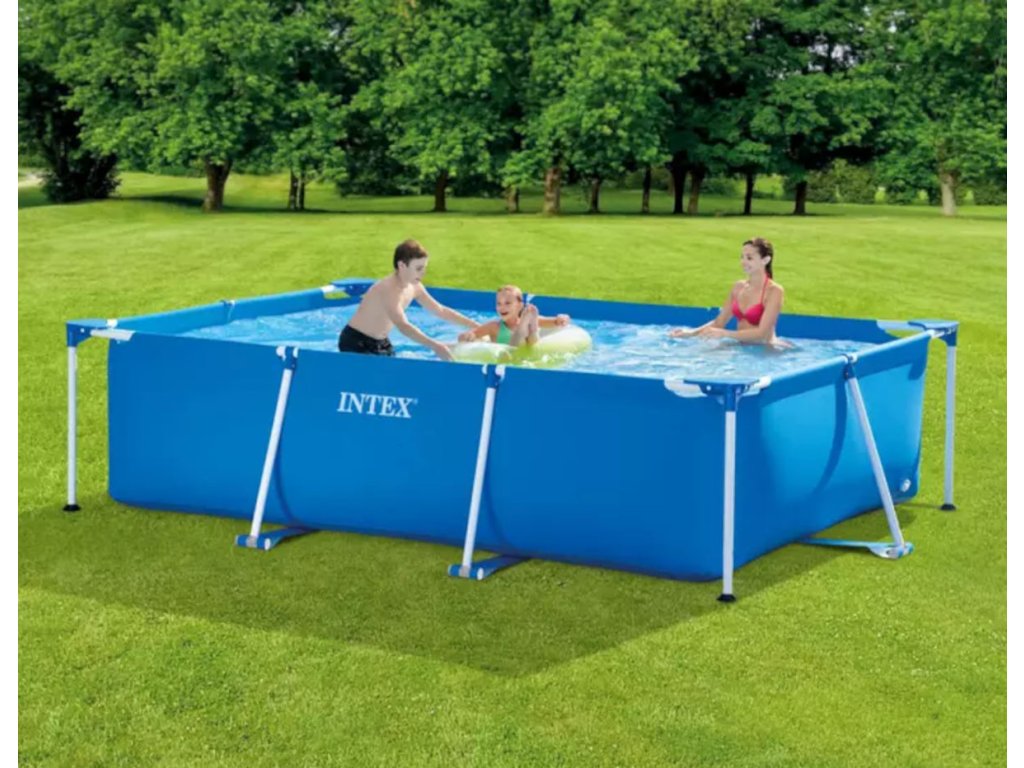 Osvěžení v horkých dnech a radost celé rodině poskytne obdélníkový modrý bazén s kovovým rámem o velikosti 300 × 200 × 75 cm.