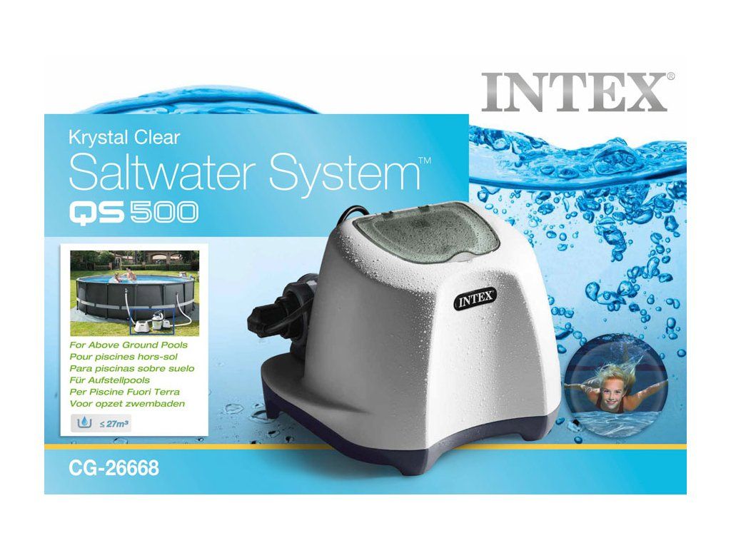 Díky systému Intex Krystal Clear solinátor již není potřeba přidávat chlór k dezinfekci vody do bazénu. Tato metoda úpravy vody v bazénech je čím dál tím víc v oblibě. Vaše voda v bazénu bude díky solinátoru zdravější, čistější, průzračnější a vaše pokožka ji ocení. Solinátor redukuje potřebné množství chlóru o 70%. Ideální hladina soli v bazénové vodě je mezi 2,5-3 kg/m3, hodnotu 3 kg/m3 lze považovat za optimální.
