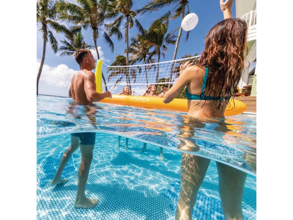 S touto nafukovací volejbalovou sadou od firmy INTEX můžete zažít spoustu zábavy. Ideální pro bazénové sportovní turnaje s kamarády nebo rodinou. Základna sítě byla uzpůsobena pro připevnění závaží, které udržuje stabilitu sítě. Vyrobeno z kvalitního a pevného materiálu.