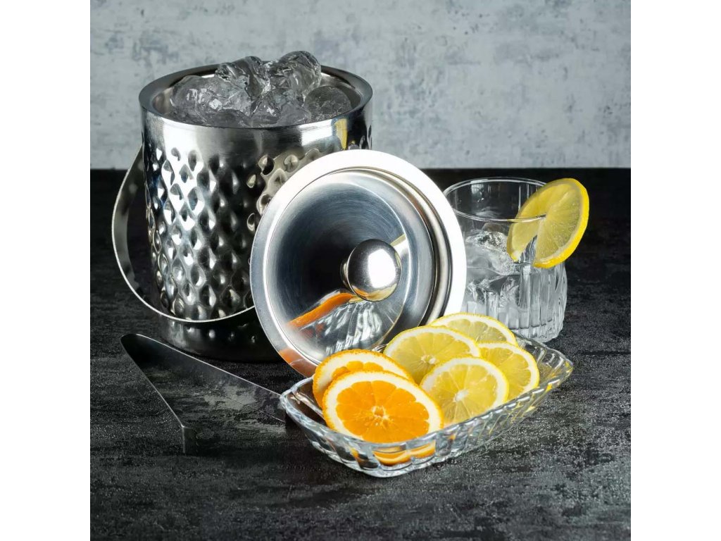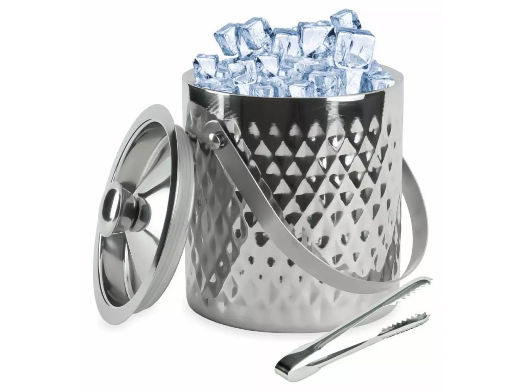 Kbelík na led je vyroben z vysoce kvalitní nerezové oceli. Jedná se o nádobu s víkem a praktickou sklopnou rukojetí. Díky dvojitým stěnám má tepelně izolační vlastnosti, takže umožňuje déle skladovat led a kdykoli jej podávat k nápojům a nápojům.