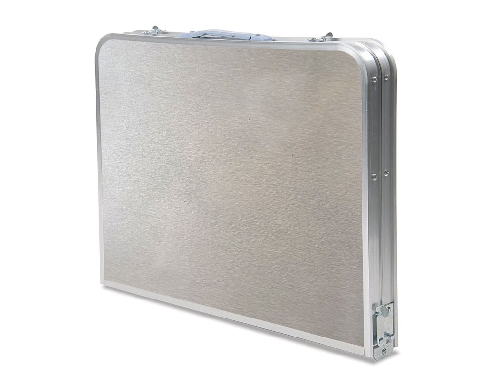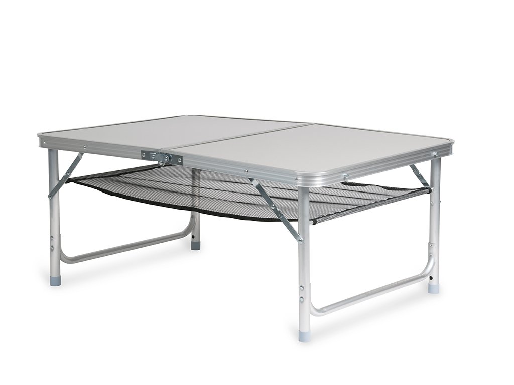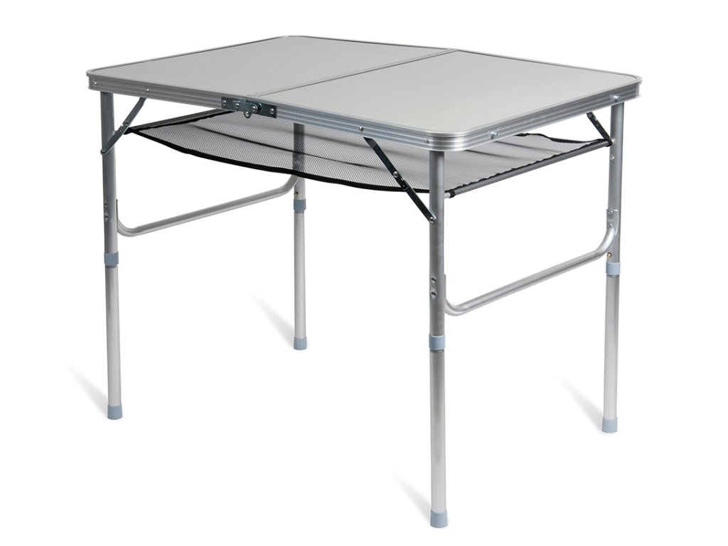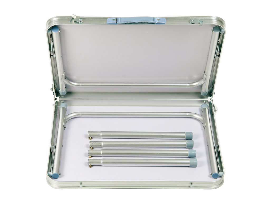Stabilní skládací kempingový stolek s hliníkovým rámem a konstrukcí. Kempingový stolek je ideálním řešením pro turistiku, stanování a jiné letní outdoorové aktivity. Kempingový stolek se skládá se napůl, tím z něj vznikne kufr, který je možné pohodlně přenášet.