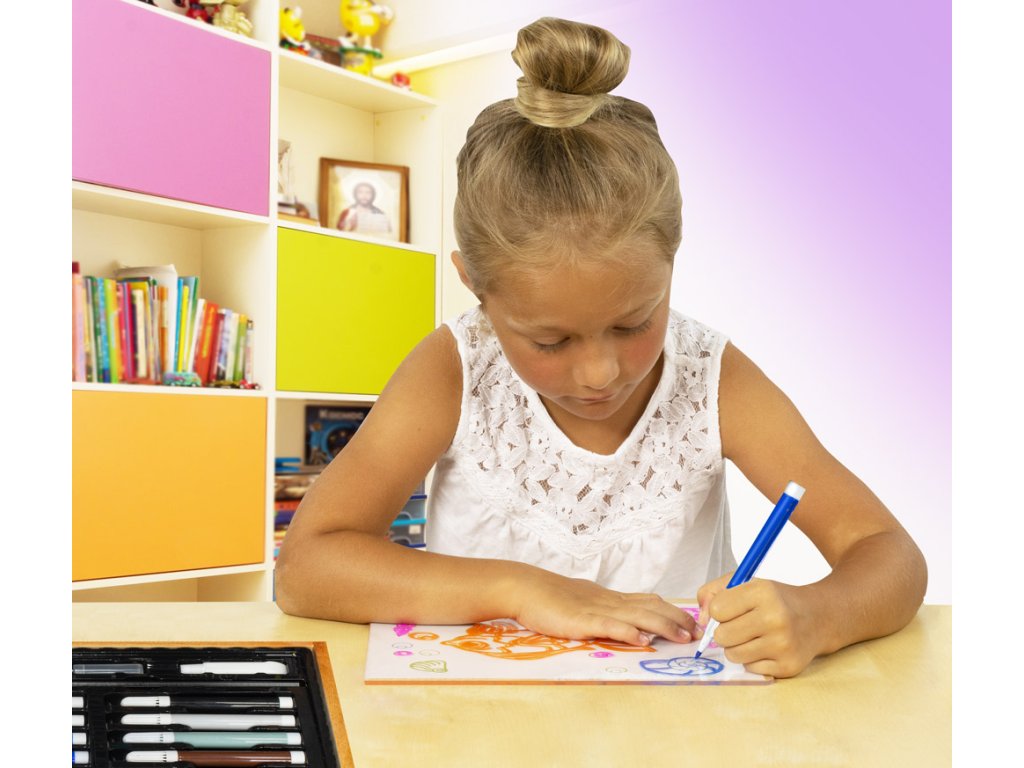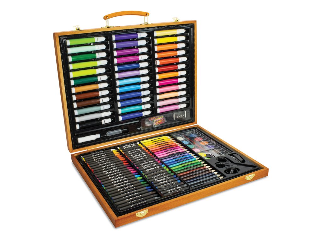 Umělecká sada pro začínající i pokročilé umělce. Vhodné jako krásný dárek pro kreativní tvoření. Kreativní sada je uložena v elegantním dřevěném kufříku - přenášení obsahu je jednoduché a pohodlné.