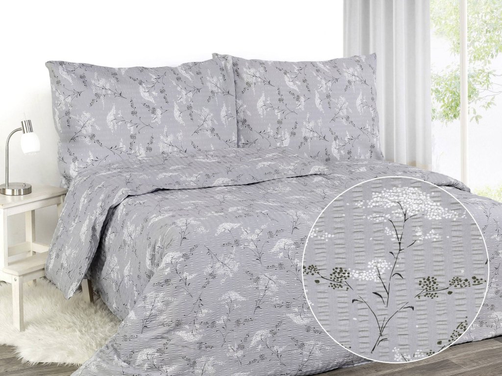 Povlečení krepové šedé – Bílé květiny je ideální volbou pro ty, kdo hledají spojení praktičnosti, pohodlí a jemného designu, který zútulní každou ložnici.