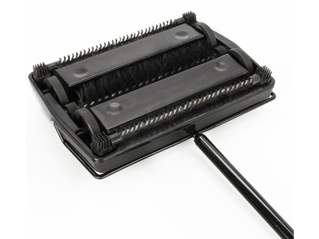 Tradiční celokovový mechanický zametač rychle a spolehlivě zamete nečistoty bez použití elektrické energie.