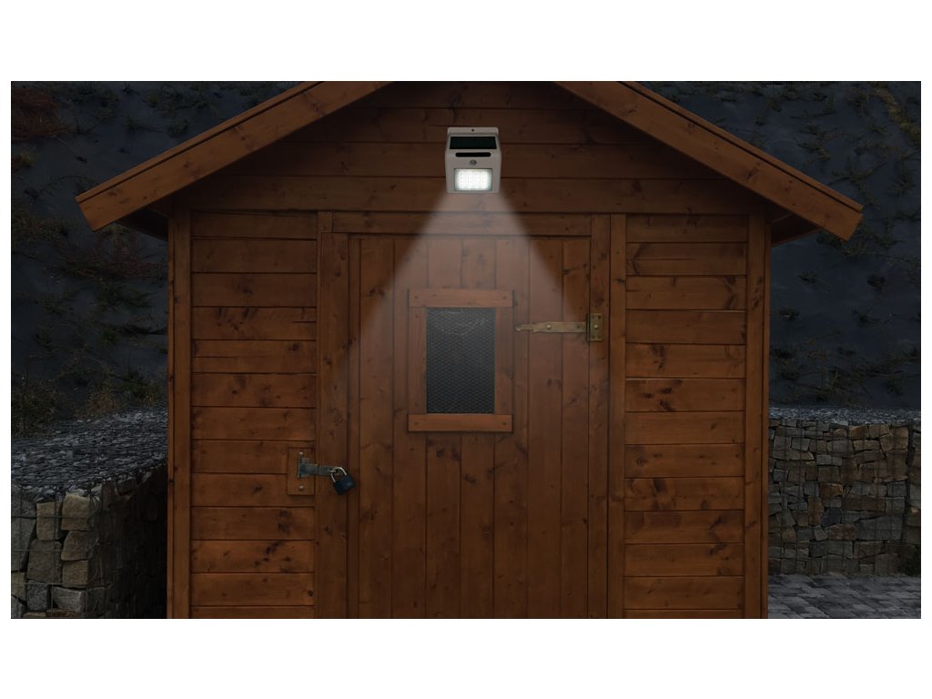 Praktické, energeticky úsporné LED světlo s integrovaným solárním panelem a detektorem pohybu se hodí na každou zahradu i na jiná venkovní místa, např. k osvětlení schodiště, stěny nebo cesty.
