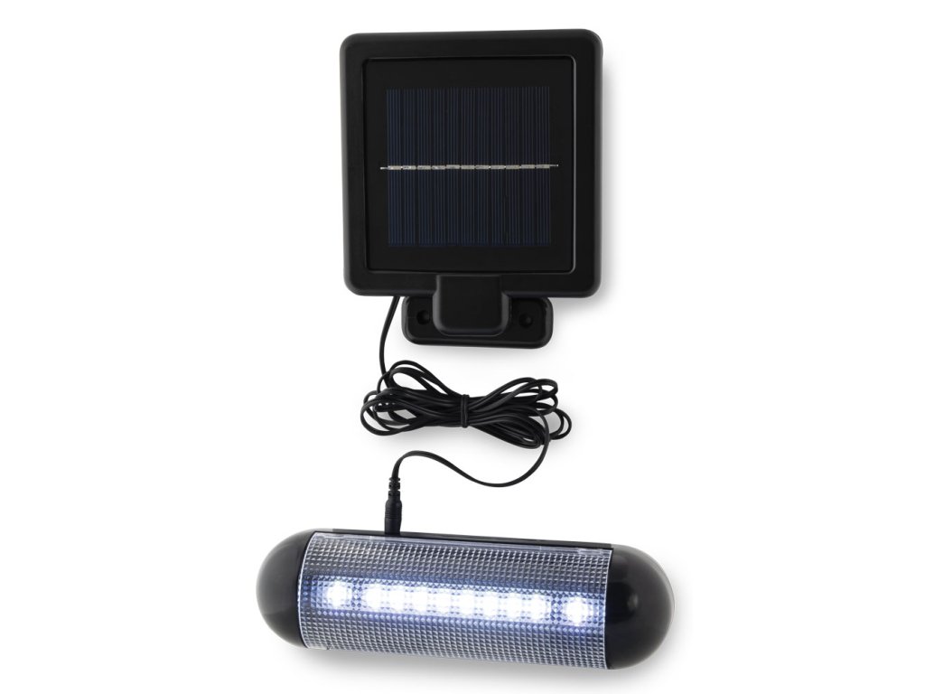 Nástěnné svítidlo s odděleným solárním panelem. 10 LED diod, doba svícení až 8 hodin.