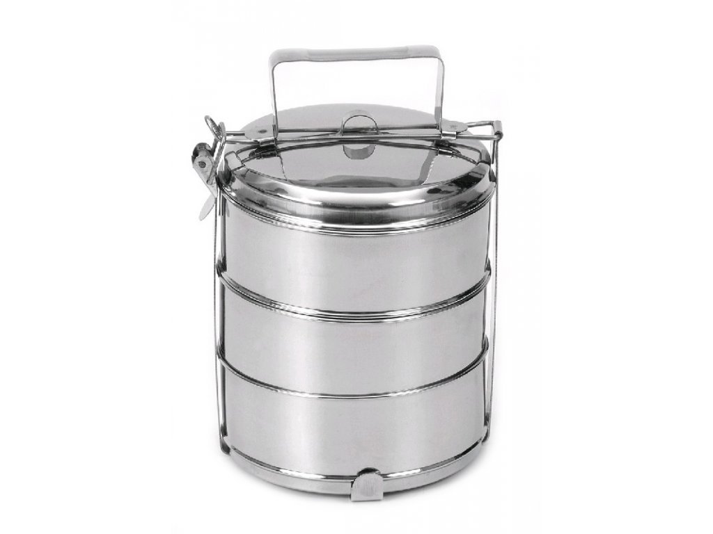 Třídílný jídlonosič z nerezové oceli je určen pro pohodlné přenášení potravin. Skládá se ze 3 misek a pokličky, které jsou propojeny držadlem s praktickou sponou.