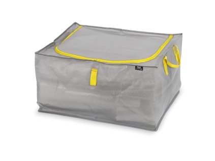 Obal je vyroben z pevného polypropylénu a je voděodolný a omývatelný. Zapínání na zip v horní části zajišťuje, že obsah je v bezpečí, bez špíny, prachu a vlhkosti a zip umožňuje snadný přístup. Pomocí žluté rukojeťi umístěné v přední části můžete pohodlně vysunout obal ze skříně či police nebo jej přemísťovat.