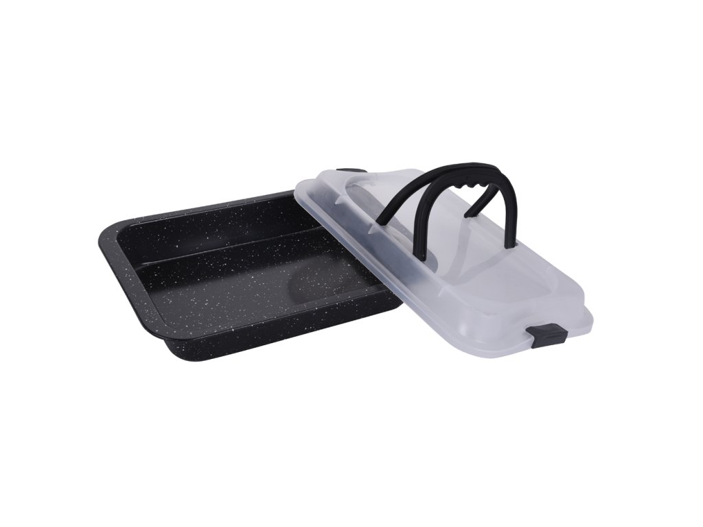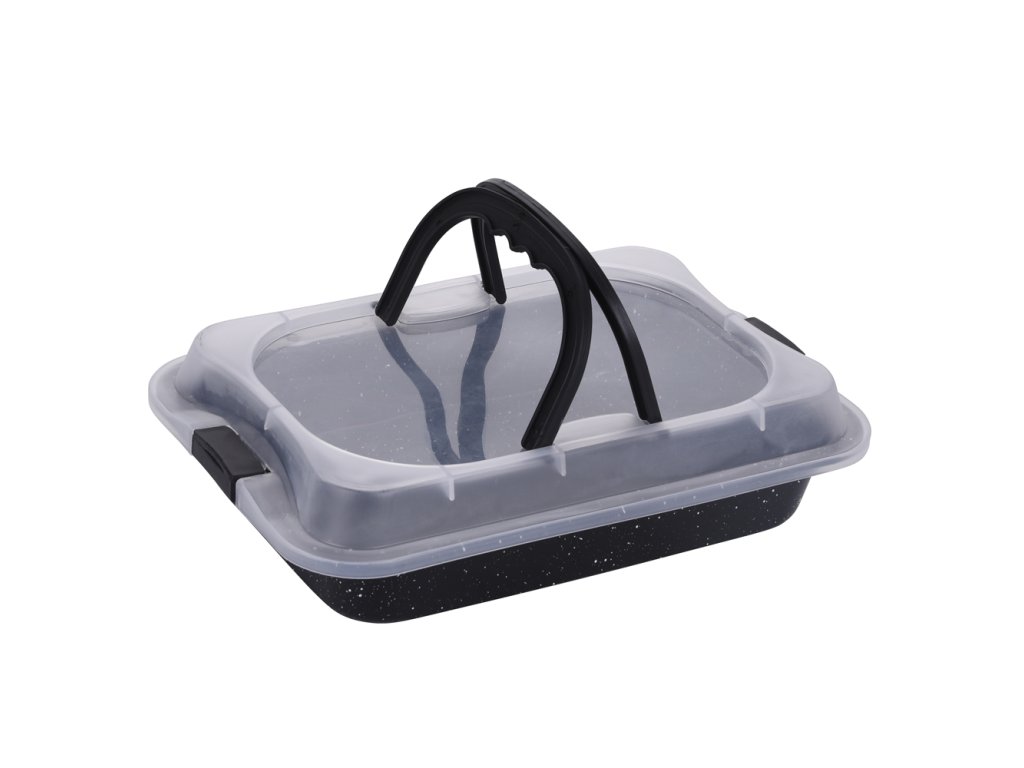 Nechybí ani praktické plastové víko k pekáči, které určitě oceníte při uchovávání upečeného pokrmu. Víko nepatří do trouby.