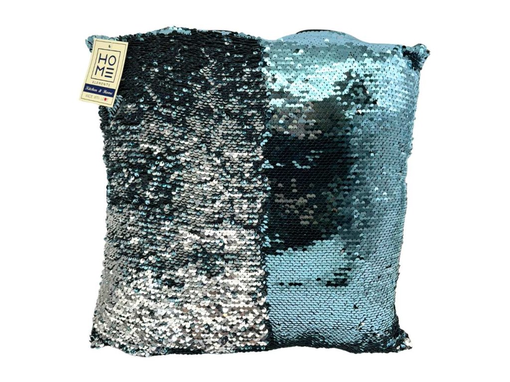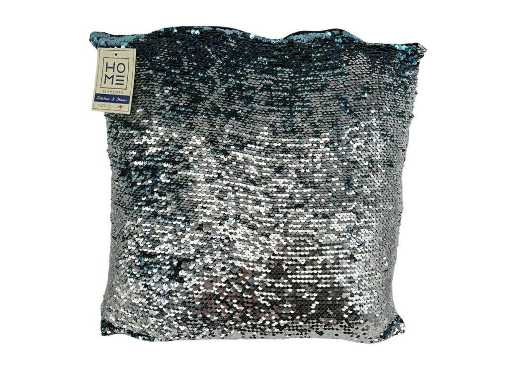 Modro stříbrný netradiční polštářek s flitry, který potěší, zejména osoby, které mají rádi nápadité dárky. Vyzdobí si tak pěkně třeba ložnici.