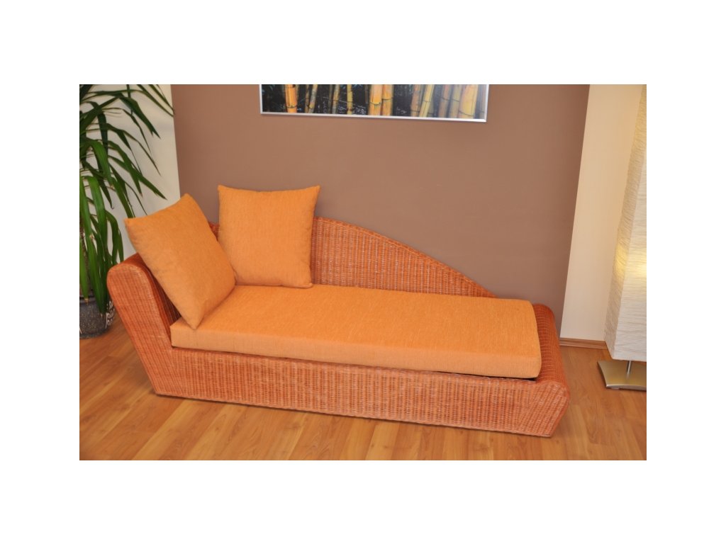 Ratanová odpočinková pohovka koňak pravá polstr oranžový
