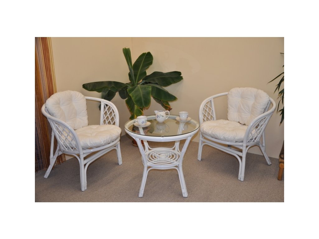 Ratanová sedací souprava Bahama bílá 2+1, polstry bílé