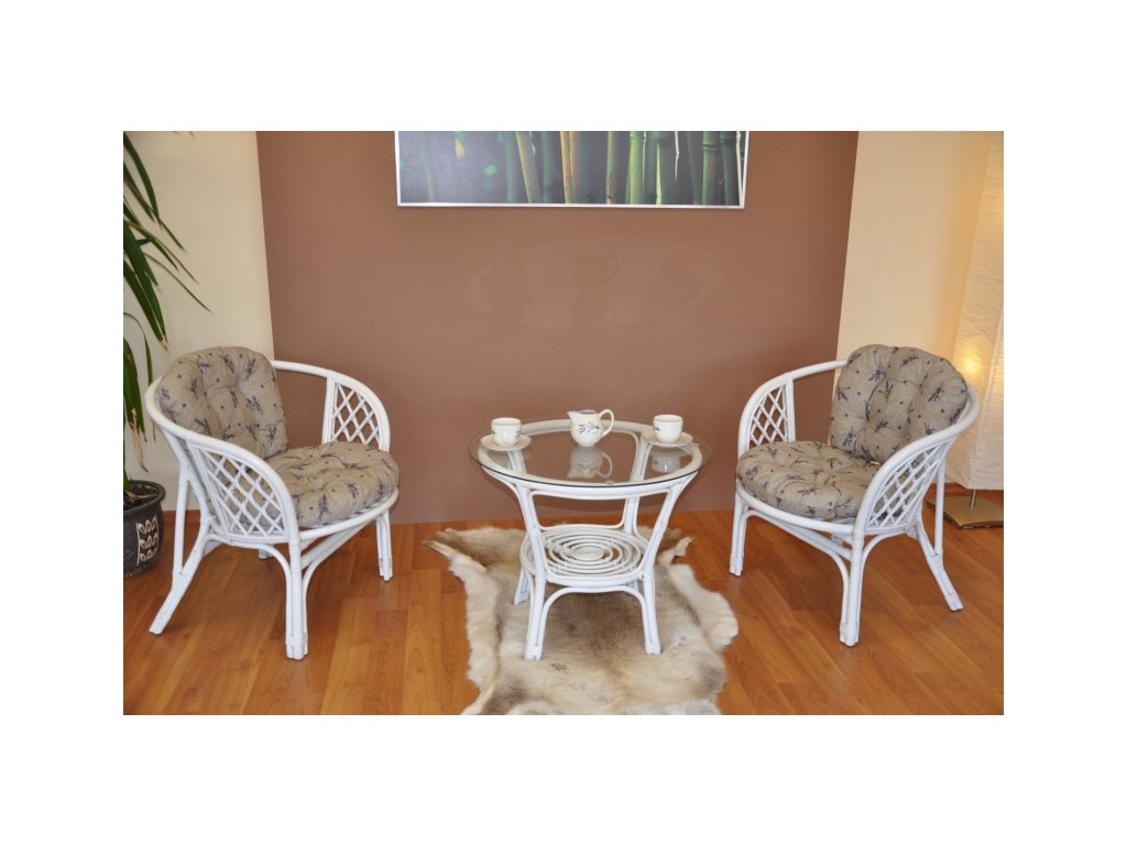 Barva ratanové konstrukce i výpletu je bílá.