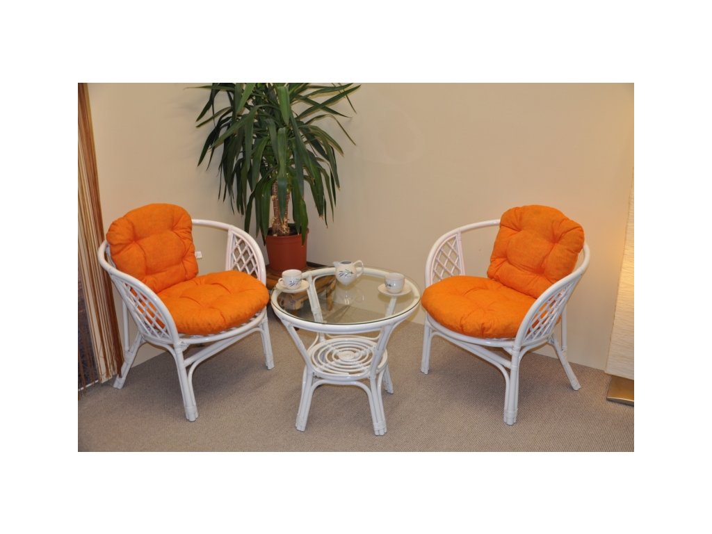 Ratanová sedací souprava Bahama bílá 2+1, polstry oranžový melír