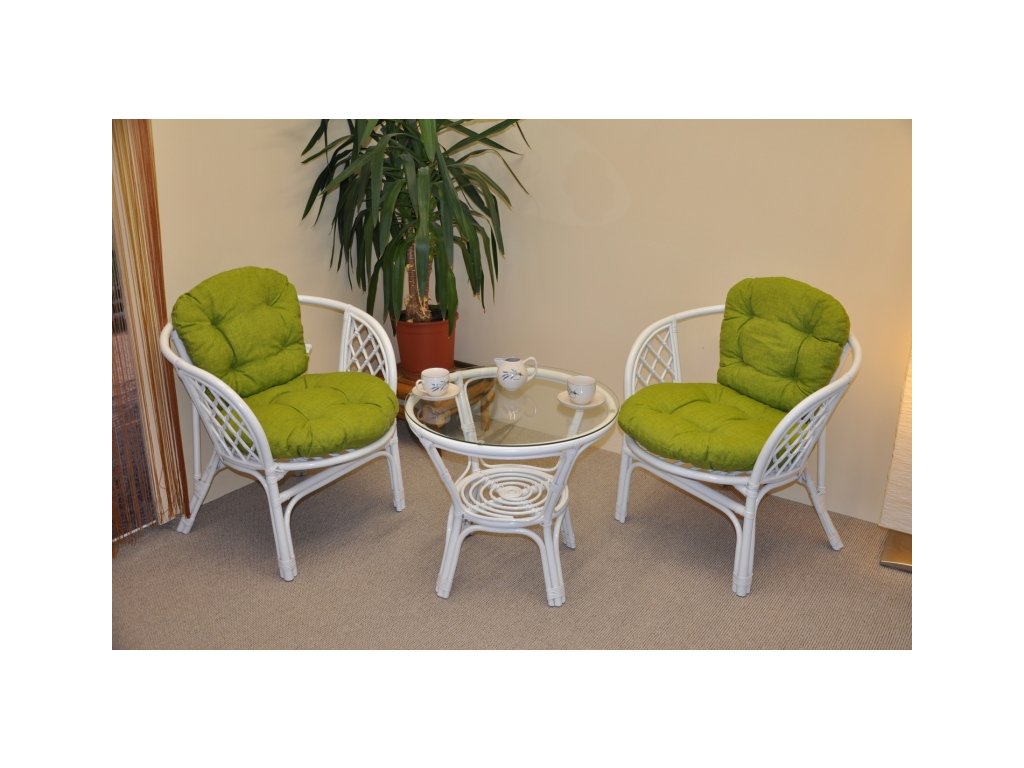 Ratanová sedací souprava Bahama bílá 2+1, polstry světle zelený melír