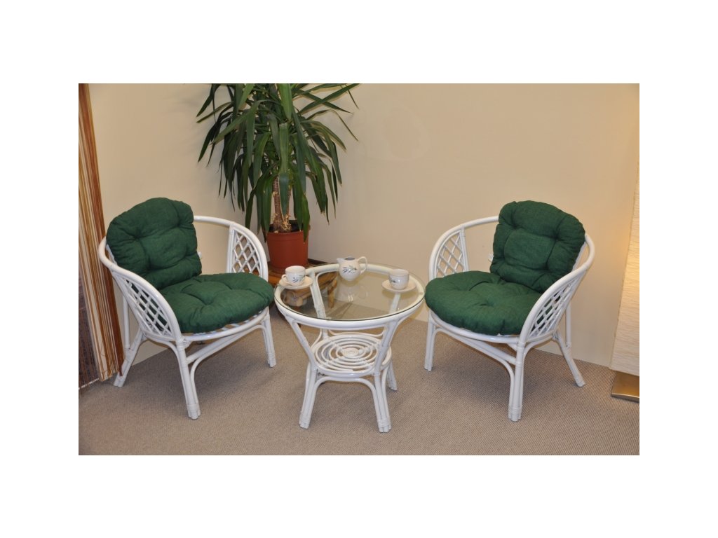 Ratanová sedací souprava Bahama bílá 2+1, polstry tmavě zelený melír