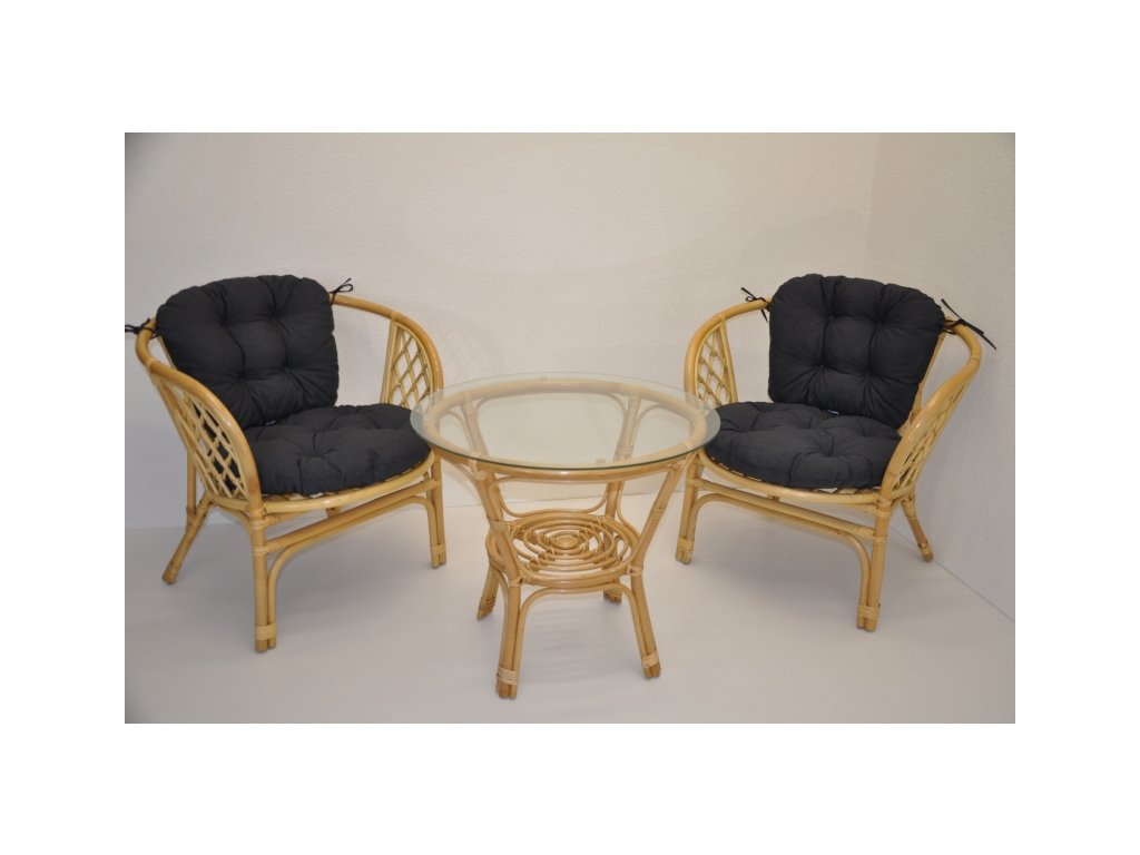 Ratanová sedací souprava Bahama malá medová polstry tmavě šedý melír