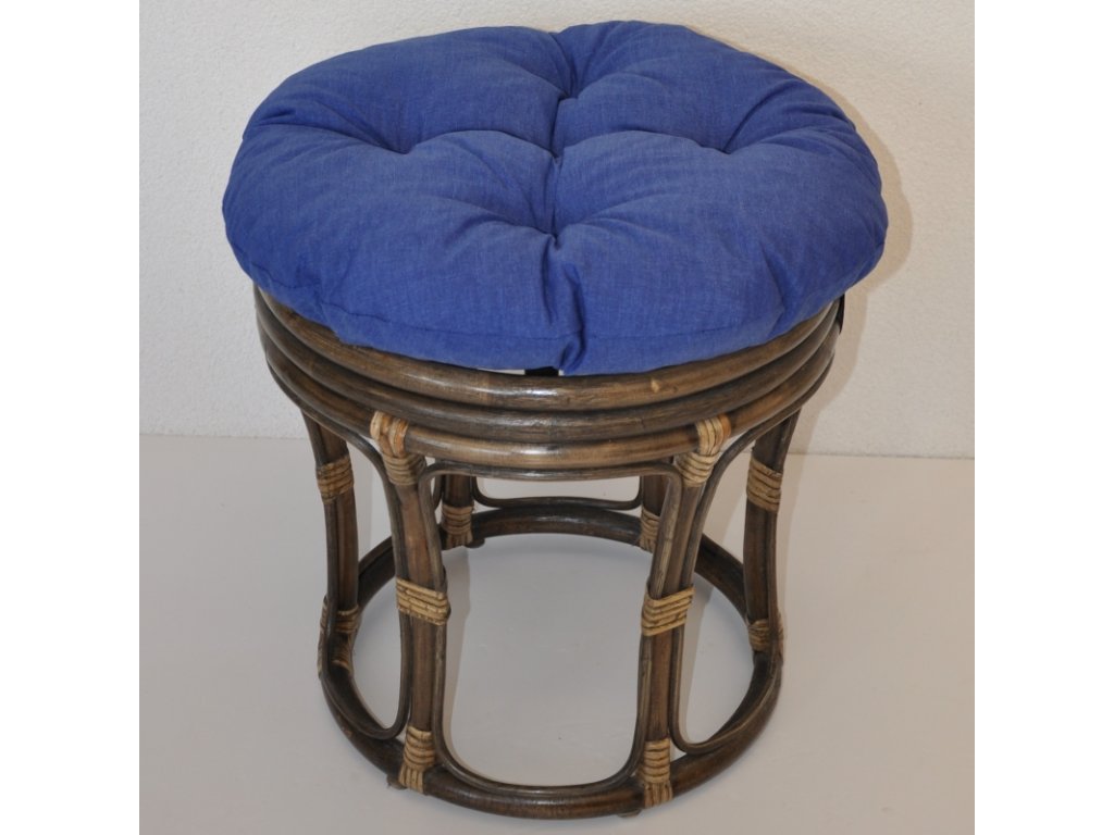 Ratanová taburetka velká hnědá polstr tmavě modrý melír