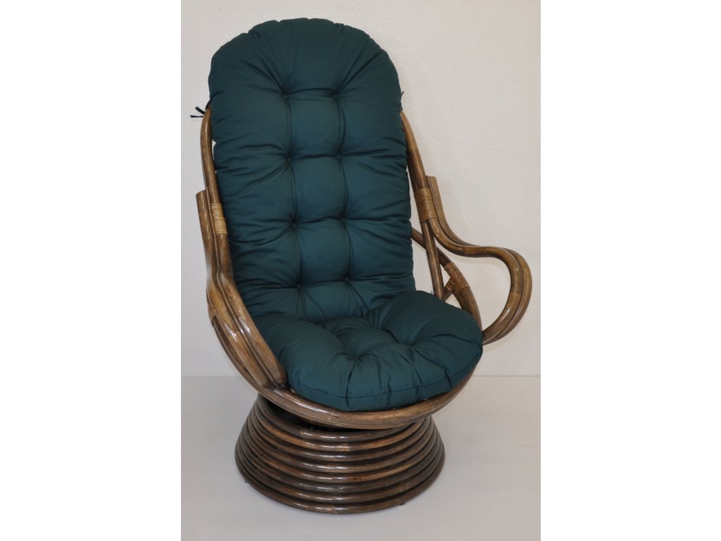 Ratanové houpací křeslo Swivel hnědé polstr zelený dralon
