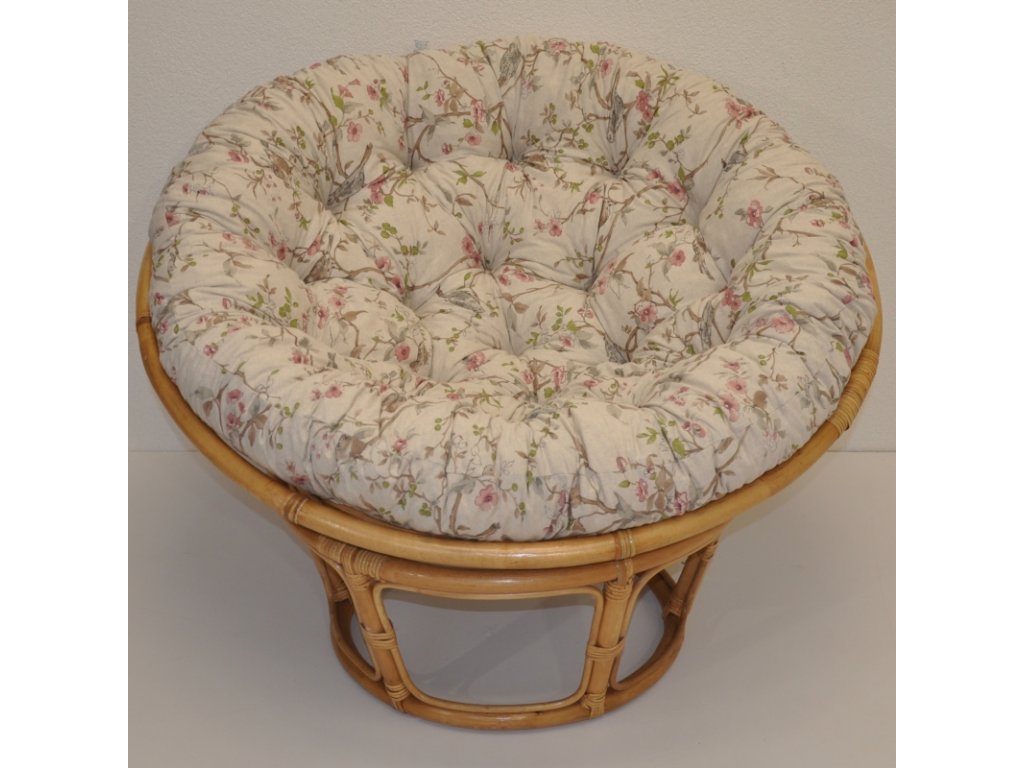 Ratanový papasan 100 cm medový polstr motiv ptáci