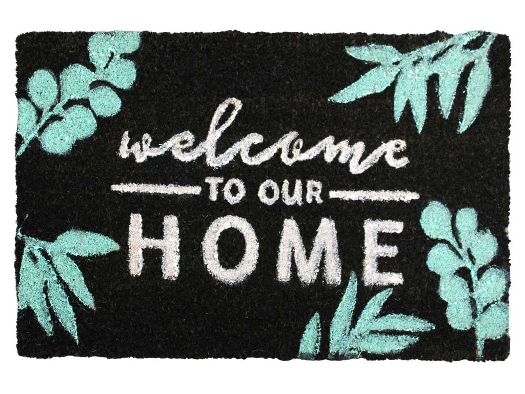Elegantní tmavá rohožka z kokosových vláken svým nápisem Welcome to our HOME vítá do domácnosti každého příchozího. Vkusně ozdobí vstupní dveře a spolehlivě očistí podrážky obuvi od hrubých venkovních nečistot. Spodní strana je pogumovaná a zaručuje tak fixaci k podlaze. Vrchní část je z kokosových vláken.