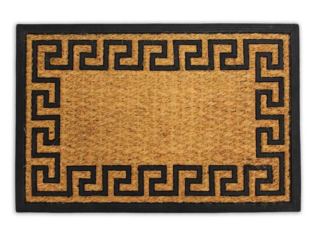 Rohožka z kokosových vláken a gumy před vstupními dveřmi, na terase či balkoně je důležitý pomocník pro udržení čistoty vaší domácnosti. Každý příchozí si může lehce očistit podrážky své obuvi. Spodní strana rohožky je z recyklované gumy a dobře drží na podlaze. Rohožka je v přírodní barvě s černým orientálním vzorem po obvodu, je nejen praktická, ale i pěkná.