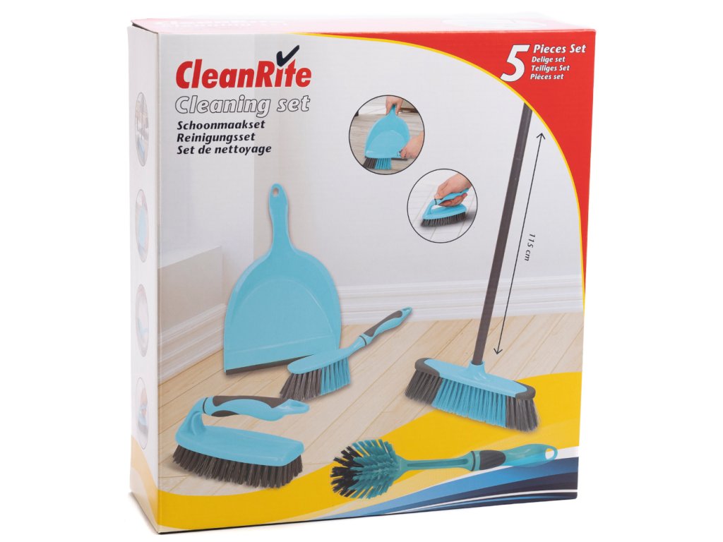 Praktická nezbytná sada s 5 kusy úklidových pomůcek do vaší domácnosti.