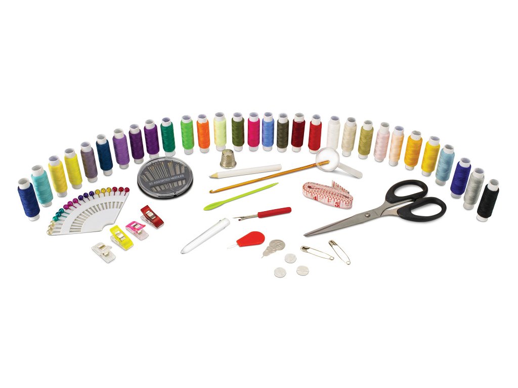 Sada univerzálních šicích potřeb pro domácí šití a opravy nebo pro použití na cestách.