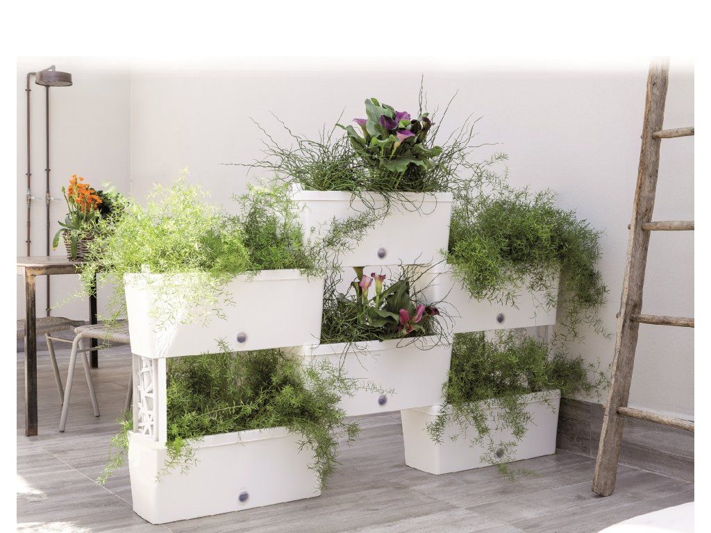 Truhlíky tvoří vnější a vnitřní nádoba, které se do sebe lehce zasouvají. U truhlíků oceníte automatický zavlažovací systém pomocí důmyslného propojení všech truhlíků mezi sebou. Množství vody lze kontrolovat jednoduše měrkou hladiny vody. Jsou vyrobeny z certifikovaných a netoxických pryskyřic, odolných vůči změnám teplot až do -20 °C, otřesům, nárazům a UV záření. 100% recyklovatelný materiál.