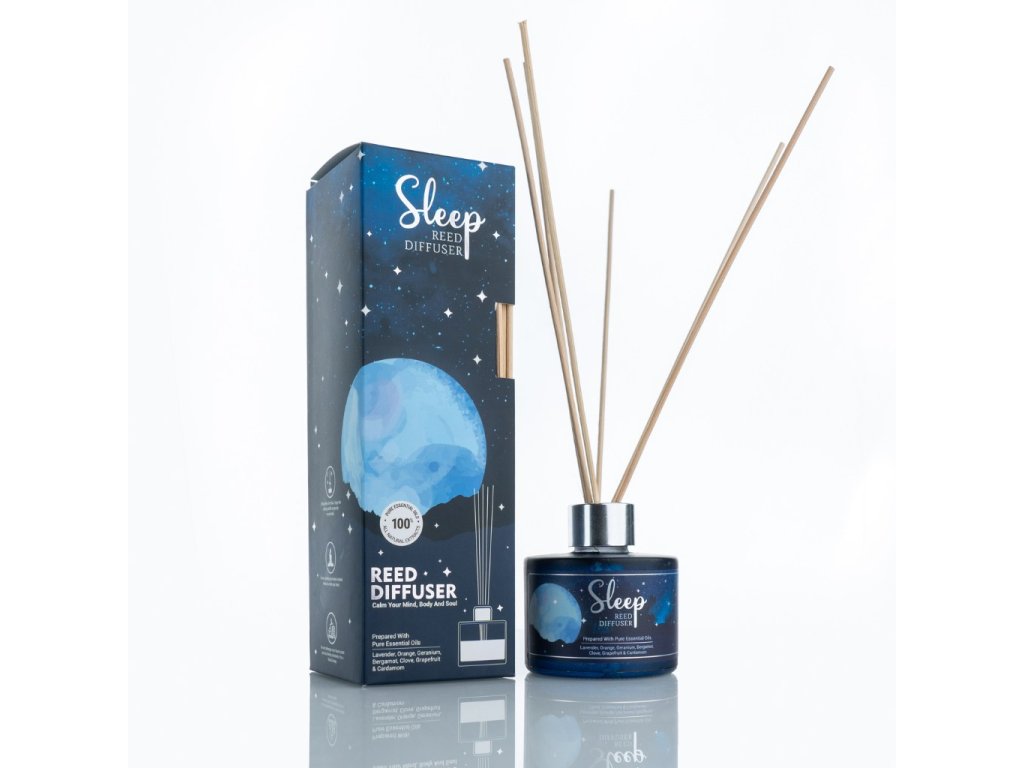Rákosový difuzér řady Sleep je připraven z čistých přírodních esenciálních olejů s výtažky levandule, pomeranče, pelargónie, bergamotu, hřebíčku, grapefruitu a kardamomu.