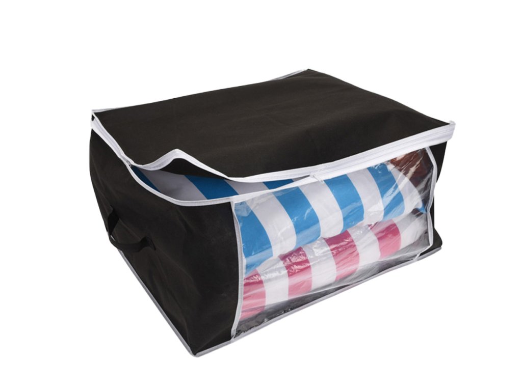 Praktická taška na lůžkoviny, přikrývky, polštáře a oblečení. Chrání oblečení před vlhkostí, prachem, moly a zároveň poskytuje pohodlné uložení ve skříni nebo pod postelí. Je také ideální pro přepravu lůžkovin nebo oděvů, s praktickou rukojetí pro snadné přenášení.