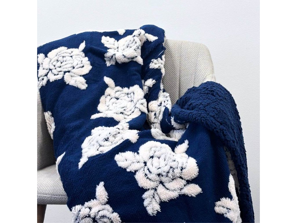 - Teplá mikroflanelová deka s beránkem. Modrá s bílým jacquardovým vzorem, 150 x 200 cm