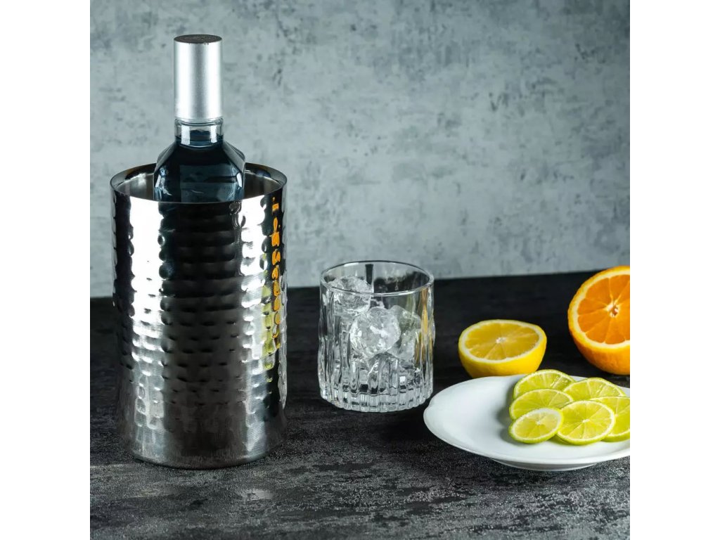 Elegantní chladicí nádoba na víno a na další nápoje. Umožňuje udržet teplotu alkoholu po delší dobu a na stole během večírku vypadá elegantně. Použití bez kostek ledu. Dvojité stěny posilují termoizolační funkci, která udržuje nízkou teplotu po dlouhou dobu, aby bylo víno ideální ke konzumaci.