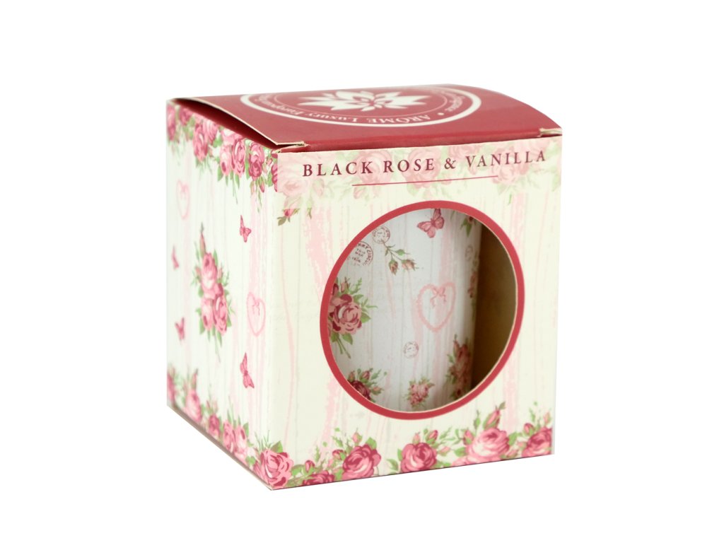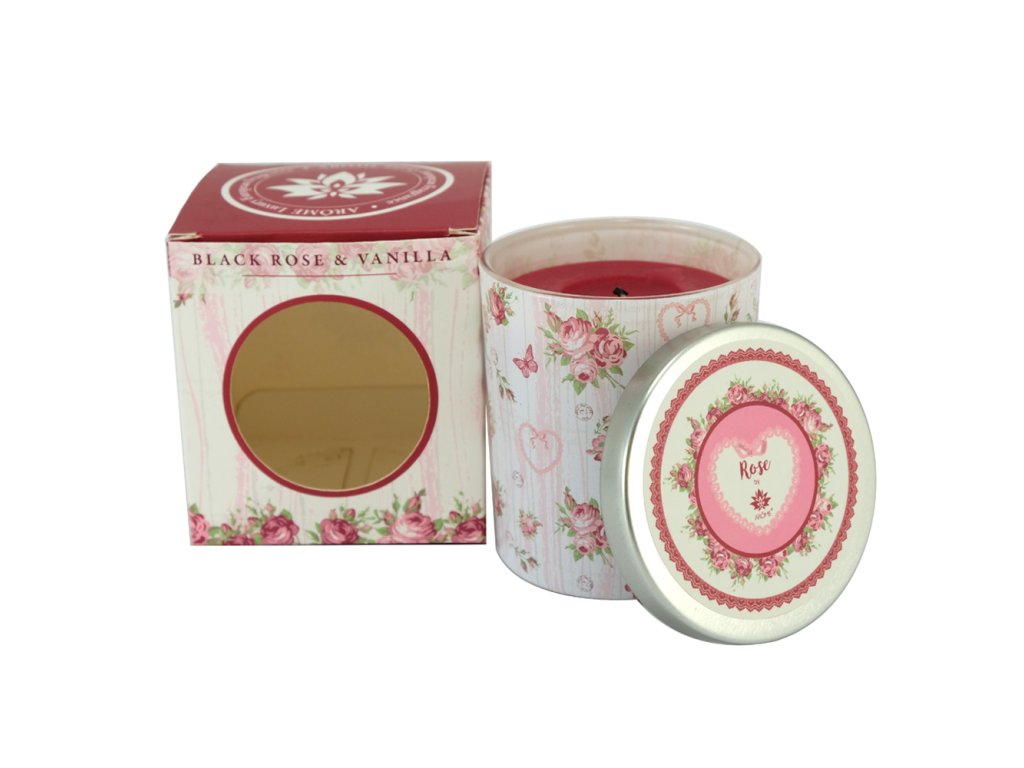 Vonná svíčka v designové skleničce s kovovým víčkem. Svíčka je balená v dárkové krabičce. Nakombinujte s dalšími produkty z kolekce Růže a slaďte tak interiér třeba své kamarádce.