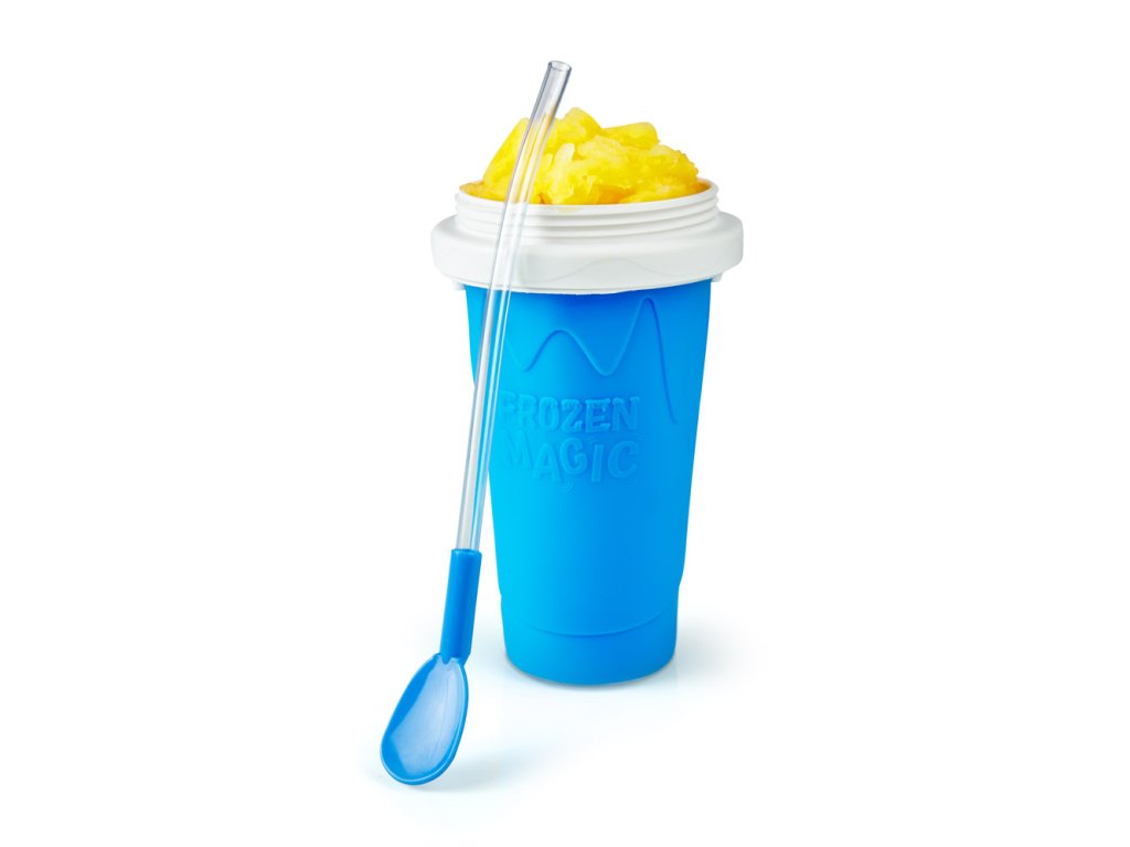 Výrobník ledové tříště - balení obsahuje: výrobník, víčko, lžičku s brčkem