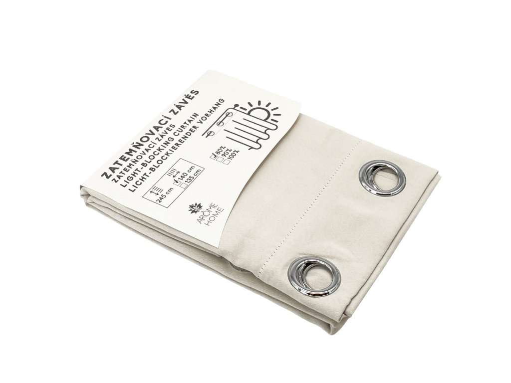 Elegantní světle béžová barva zatemňovacího závěsu krásně doplní váš domov. Závěs je hotový a připravený k zavěšení pomocí koleček.